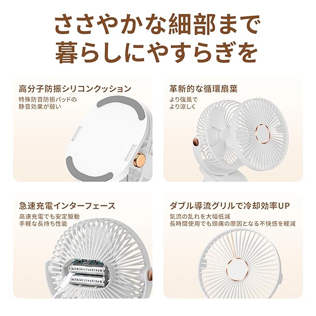 商品名:2025新登場 【極静音&夜灯機能】卓上扇風機 小型 USB充電式クリップ扇風機 5段階風量調節 26db超低騒音 LEDライト付き 軽量 ミニ扇風機 循環ファン 壁掛け可能 デスクファン 熱中症予防対策 職場/自宅/学校/車に適用