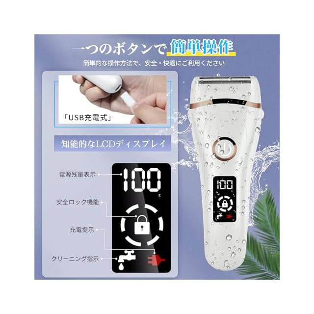 【USB充電&超長時間使用&持ち運び便利】USB充電なので、ケーブルの差し込み口さえあれば、どこにでも充電できます。電池の交換不要、頻繁に電池を交換する手間が省ける。 また、600mAh電池内臓、約2時間フル充電可能、約70min連続使用可能です。 安全ロックも設計に追加されており、旅行や出張中に女性用電気シェーバーを誤って開いたり、誤って起動したりすることを防ぎます。 この製品は約120g、コンパクト軽量で、バッグやポケットに入れやすく、持ち運びが簡単で、旅行、出張、仕事などに適しています。