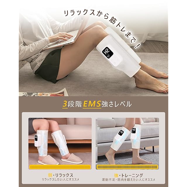 【3段階EMS機能搭載】SintuのふくらはぎリッラクスはEMS技術を搭載。3段階の出力レベルを自由に調整できす。テレビを見ながら、読書しながら、手軽に足のリッラクスができます。