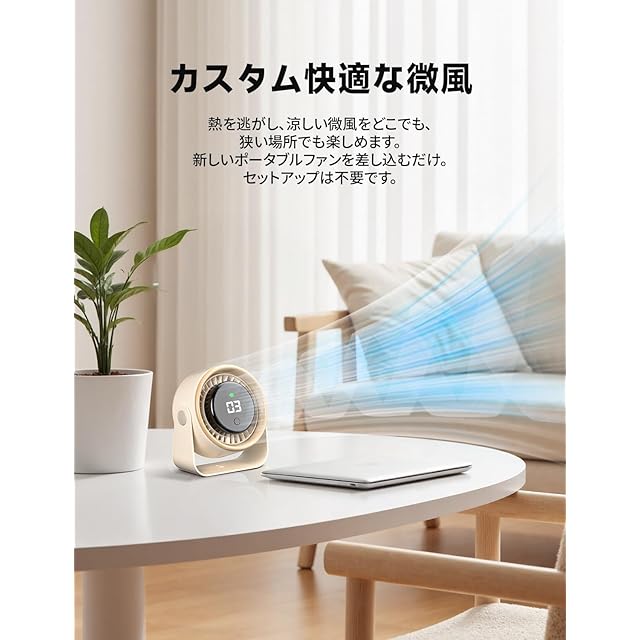 【安心安全のスマート設計|次世代型卓上サーキュレーター】 このUSB扇風機は操作がわかりやすいディスプレイを装備し、サーキュレーターのような高度な風量設定を一目で確認可能。物理ボタン採用で誤操作を防止します。卓上扇風機ならではの高密度プロテクショングリルでお子様の指の接触を防止するなど、家庭用サーキュレーターとしての安全性にも配慮。従来のUSB扇風機の弱点を克服した進化版モデルです。