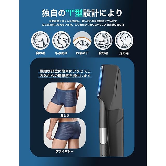 i型カッターヘッドデザイン: 独特な「I」字型のブレードヘッドを使っており、体のトリミングしにくいエリアをきれいに整えて、例えば:鼠径部や大臀筋です。鋭くて安全なカッターヘッドは。本製品は強いモーターにアップグレードして、バッテリー容量を増やして、製品のチップを最適化して、使用時間がもっと長くなり、省エネになりました。本体的にも簡単にメンテナンスすることができます。T字トリマーは付属のアタッチメントを取りつけて、毛の長さを調整できます。本体は環境にやさしくて耐用なABS樹脂を採用して作られており、いつでもどこでも自信を持ちましょう。