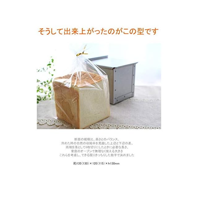 従来の食パン型では得られなかった「市販の食パン1斤のサイズ感」を追求した浅井商店試作チームオリジナル開発の食パン型です。<br> 焼成して自然に収縮する分も見越して各辺の長さを設定し、高さとのバランス、スライスした1斤としての形などあらゆる想定をしました。<br> ※高さが13cmでやや高めです。ご使用のオーブン庫内の高さ、フタをはずしての焼成では粉の性質や分量、レシピを必ずご確認お願いいたします。<br> ■使用方法 <br> はじめて使う時は、中性洗剤で洗って汚れや機械油を 落としたあと、必ず空焼きを行なってください。<br> ■空焼き方法<br> (1)型に何も塗らずに170℃で20~30分空焼き<br> (2)冷めたらショートニングやスプレーオイルを薄く塗って220~240℃で15~20分空焼き <br> 2,3回繰り返すとより安心です。<br> ※使用のたびにショートニングやスプレーオイル等を塗ってから使用してください。<br> ■お手入れ方法 <br> ご使用後は、汚れをよく拭き取って乾燥させて保管してください。<br> 汚れがひどければ中性洗剤で 洗ってすぐに水気を拭き、オーブンの余熱等で完全に乾燥させて保管してください。<br> ■注意事項 <br> スチール(メッキや表面加工の下がスチールのもの含む)が使われている製品は、型のフチなど加工ののっていない部分や表面の傷などから錆びる可能性があります。水洗いをしたあとすぐに拭き取らず時間を置いたり、水分の多いものや液体を入れて使用すると 錆が発生しやすくなります。ご注意ください。<br> ブリキ・アルタイト・アルスター・ギルアは、付着している油がなじんで型離れがよくなるため、 通常は洗剤で洗わず、軽く汚れを拭き取ります。長期使用しないときには洗剤で良く洗い、 オーブンで十分乾燥させて保管する事をお勧めします。<br> ■こちらの商品は、業務用商品です。<br> 製造時・出荷梱包時のすり傷や重ね傷などがございますが、使用には差し支えありません。また、業務用品のため、ビニール包装となります<br> 業務用商品ゆえに、低価格にて皆様にもご提供致しております。<br> 傷などによる返品・交換は、恐れいりますが出来かねます。<br> 上記ご理解・ご納得のうえ、お買い上げいただきますようお願い申し上げます。