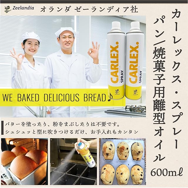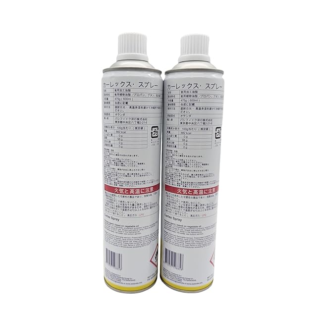 【商品説明】 焼き菓子や製パン用の離型油(食品用スプレーオイル)です。 スプレーした後に離型油の薄い皮膜を形成し抜群の剥離効果と美しい焼き上がりを実現できます。 【商品寸法】 H29cm x W6cm x L6 cm 【容量】 600ml(=480g) 【保存方法】 常温冷暗所保存(最適保存温度帯 15-30℃) 【原材料】 食用植物油脂、プロパン、ブタン、乳化剤(菜種由来)、シリコーン樹脂