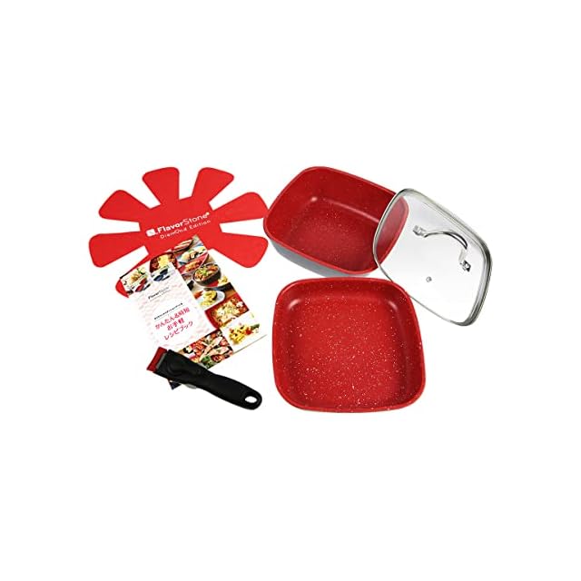 商品名:フレーバーストーン ダイヤモンドエディション 6点セット (レッド) 焦げつきにくい フライパン スクエア オーブン調理可能