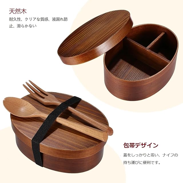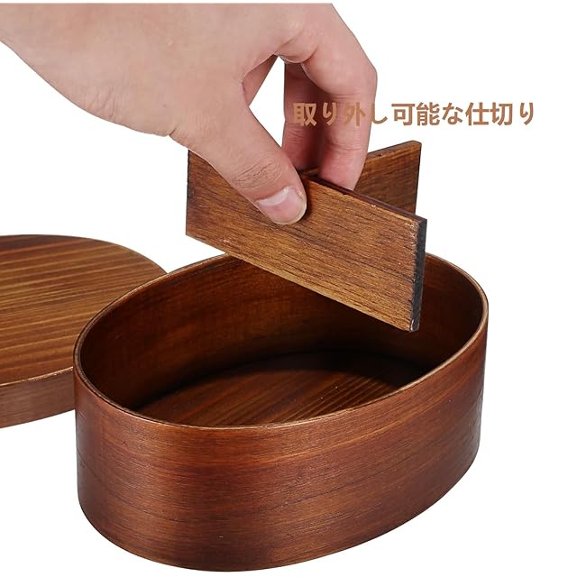 【デザイン&機能性】漆塗りを加工された、シンプルで飽きこない高級感が溢れる日本らしいデザイン!取り外し可能なT字型のおかず仕切り付き、食品を分類して保管することができます。食品がこぼれるのを防ぐために蓋をしっかりと覆うストラップが付属しています。