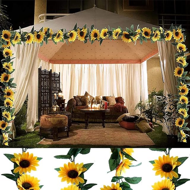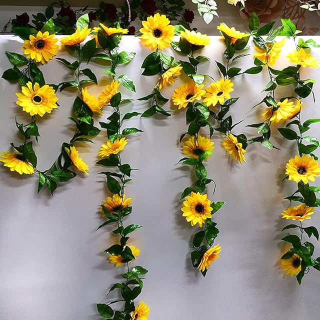 造花 インテリア ひまわり壁飾り花 枯れない花 ガーランド 向日葵 喫茶店/スーパー/茶室/自宅に適用 2.5メートル DIY 人工 装飾的な花 飾り 写真撮影 お祝い プレゼント インテリア 部屋飾り