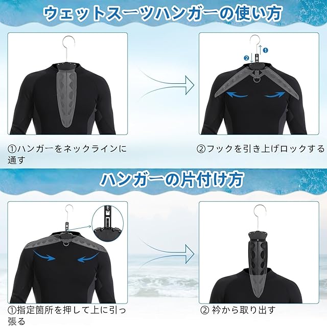 商品名:ウェットスーツハンガー サーフィン・スキューバダイビング用アクセサリー パーフェクトドライウェットスーツ ドライスーツライフジャケット クイックドライ 折りたたみ式 通気性 ウェットスーツ用乾燥機 ドライスーツ