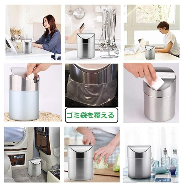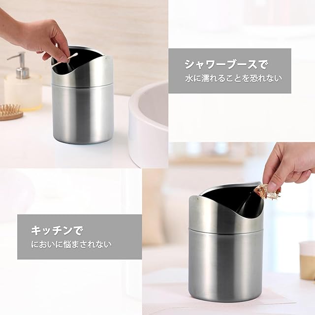 商品名:Prudencrose 卓上ミニゴミ箱 ステンレス製 スイング式蓋付き コンパクト ごみ入れ デスク用 車内/キッチン/洗面台対応 (シルバー)