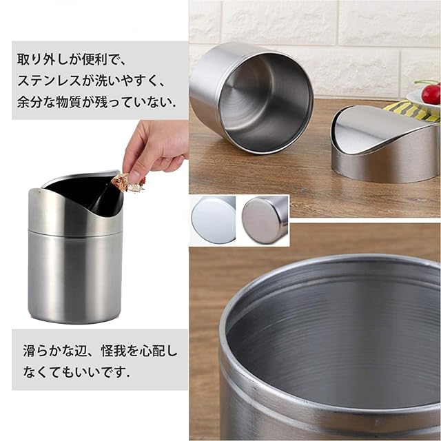 Prudencrose 卓上ミニゴミ箱 ステンレス製 スイング式蓋付き コンパクト ごみ入れ デスク用 車内/キッチン/洗面台対応 (シルバー)