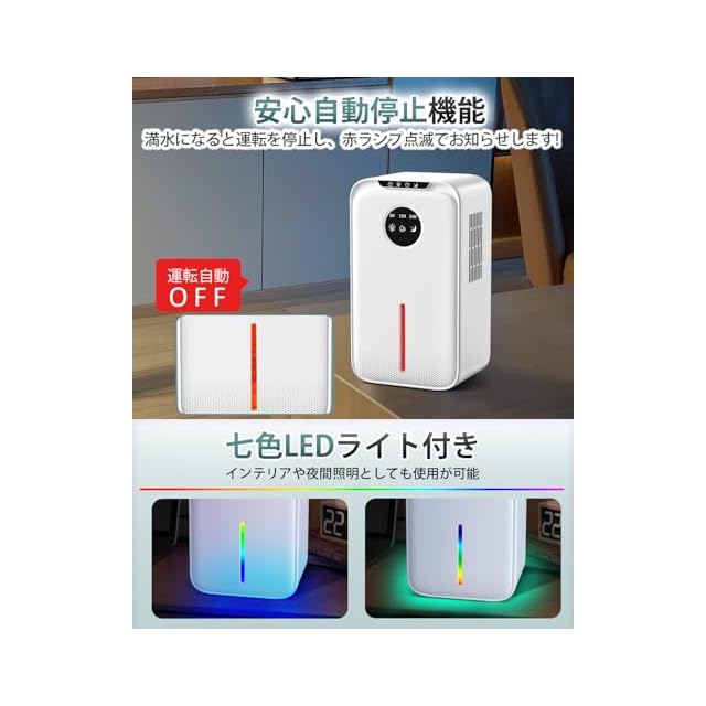 商品名:Imspace 除湿機 小型 除湿器 0.8L/日 湿気取り じょしつぎ コンパクト 静音 省工ネ 大容量 2.2L 連続排水 自動停止 タイマー機能 自動除霜機能 スリープ機能 7色LEDライト 湿気 梅雨 カビ 対策 狭所向け クローゼット/下駄箱/洗面台/脱衣所/トイレなどに適用