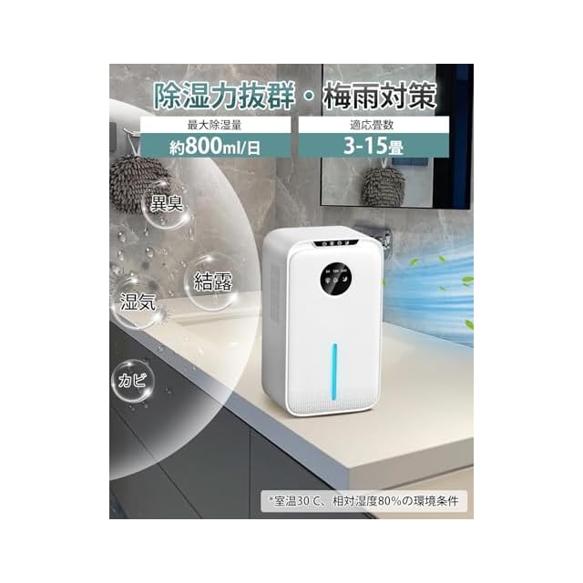 【強力除湿・2200MLの大容量】2025新版除湿機、革新的な半導体技術、アップグレード吸気口、1日に800mlの除湿能力!(湿度80%、温度30℃の環境条件でテスト)強力な除湿能力で、ダ二、結露、異臭、カビなどの湿気問題を解決し、快適で清潔な空間を作り出します。本除湿機には2.2リットルの大容量透明水箱が付属しており、除湿量が一目で分かります! 2.2Lの大容量で、頻繁な水排出作業の手間が省けます。(ご注意:吸気口を清潔に保ちほこりがなく、ほこりがあると吸気口に詰まりやすく、製品の除湿力が低下する。)