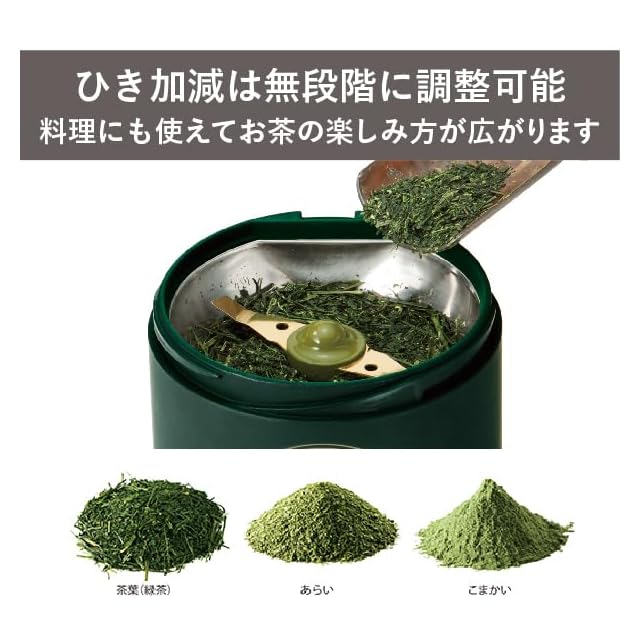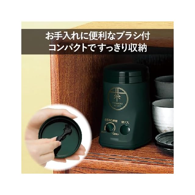 TWINBIRD(ツインバード) お茶ひき器 緑茶美彩 ミル お茶ミル 粉末 茶葉 緑茶 保存缶付 計量スプーン付 ダークグリーン GS-4671DG