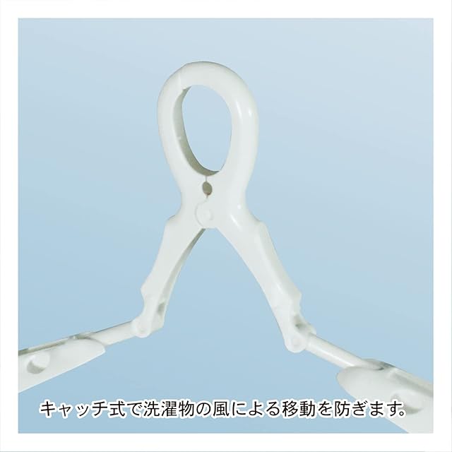 【風で落ちないキャッチ式】フック部分は竿を下からしっかり挟むキャッチ式。風によりハンガーが飛ばされたり動いてしまったりするのを防ぎます。
