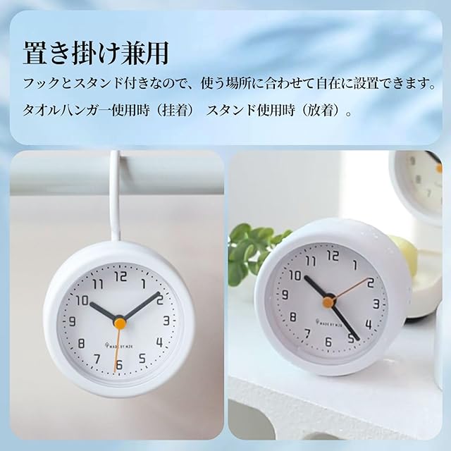 浴室内で置くこともキッチン内で使用することもできます。防水仕様だが、寿命を伸びるため、水の中に入れないでください。小ぶりなサイズでも、しっかりと見やすい掛け時計です。