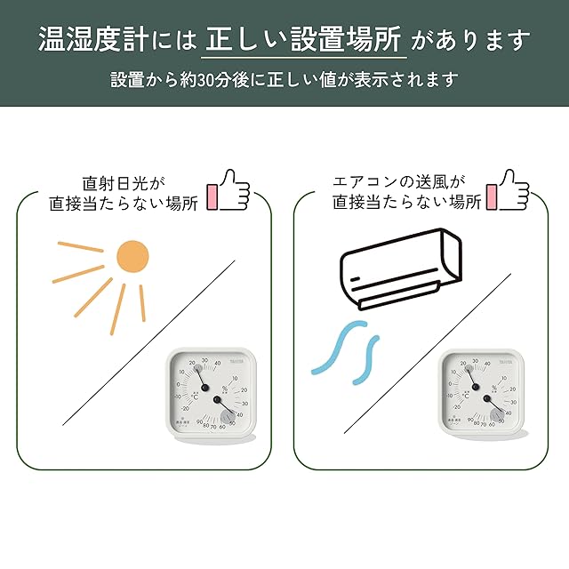 本体背面にはマグネット、フック穴がついているので、置き掛け自由。 空調管理の目安になるゾーンマーク付き。