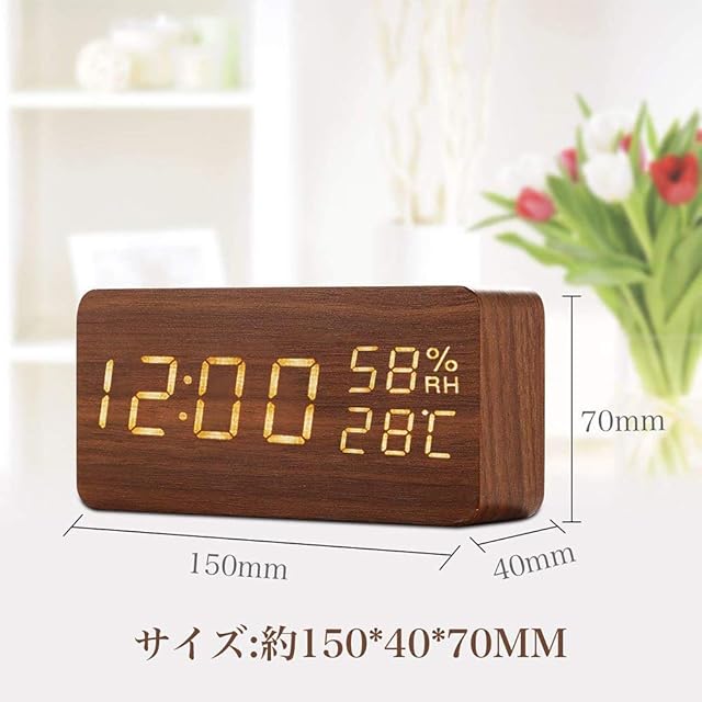 商品名:目覚まし時計 置き時計 木目 おしゃれ LEDデジタル 時計 アラームクロック 温度湿度計 カレンダー 記憶機能 USB給電式 インテリア プレゼントGoodView