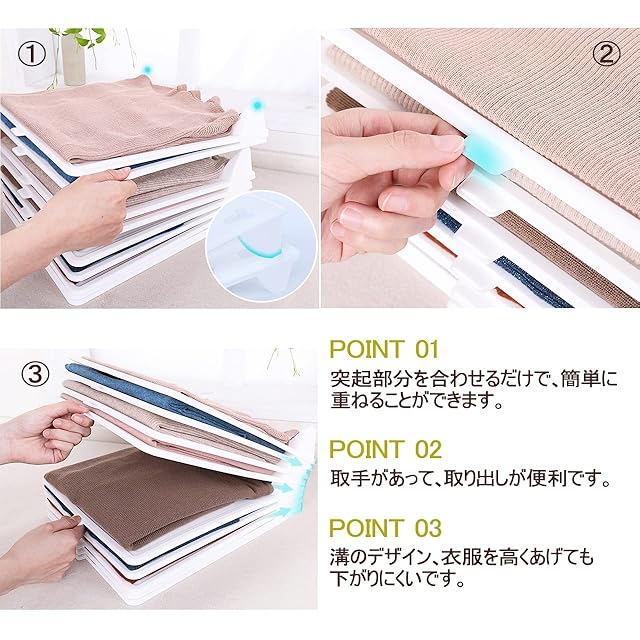【探しやすい】下に重ねた物もサッと取り出せてとても便利。服をどんどん重ねてしまって、ついつい上に置いた服ばかり着ていませんか。この商品があれば、下に溜まっていた服も忘れ去られる心配がありません!
