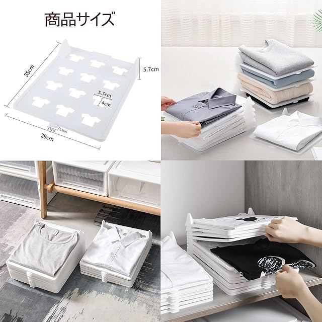 【機能紹介】この折り畳み板を利用して、男性も子供も数秒内に服装をきちんとに折り畳んで書類のように立てて収納できます。着たい服を一目で分かって楽に取り出せます。通常の積み重ねている洋服を荷崩れるシーンをご心配しないでください。 服折たたみボードX10 サイズ:36*29*6 素材:食品級PP材。
