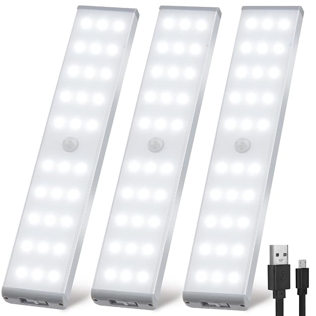 LED バーライト USB キッチン センサーライト 室内 3ピース 20CM 高輝度 冷たい白色光 Adoric 直管形 ライトバー テープ /磁石が搭載され いかなる金属に貼り付けることが可能 バッテリー駆動とUSB駆動のオプションがあります
