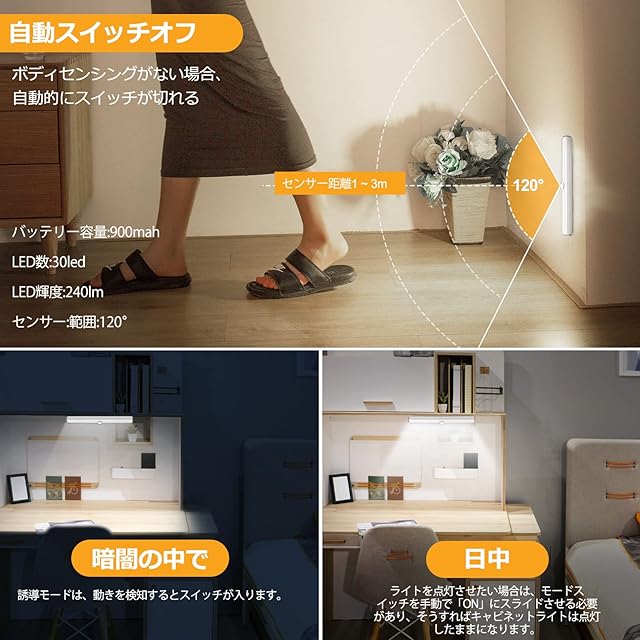 商品名:LED バーライト USB キッチン センサーライト 室内 3ピース 20CM 高輝度 冷たい白色光 Adoric 直管形 ライトバー テープ /磁石が搭載され いかなる金属に貼り付けることが可能 バッテリー駆動とUSB駆動のオプションがあります