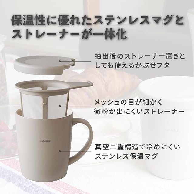 商品名:HARIO ハリオ ティー&コーヒーメーカーマグ ハンドドリップ 初心者 ギフト セット コーヒー ティー ペーパーレス 保温マグ 保冷マグ マグカップ 父の日 プレゼント 誕生日 お祝い グレージュ お茶 コーヒー TCM-300-GG
