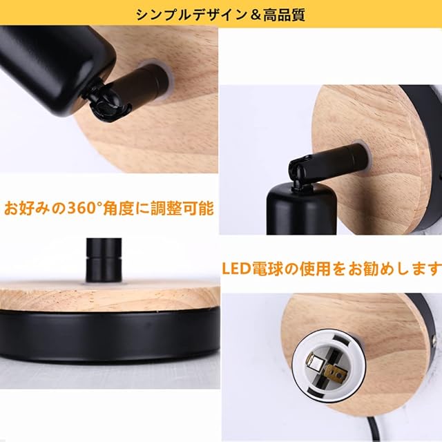 【詳細】素材:鉄、木 電球口金:E26*1 MAX30W LED対応(電球別売り) 入力電圧:110V サイズ :約10*6*2.5cm コード長さ :約170cm デザイン性に着目しインダストリアル工業チックな、渋さとカッコよさを感じる照明に仕上げており昼夜問わずお部屋の雰囲気と気分まで盛り上げます。