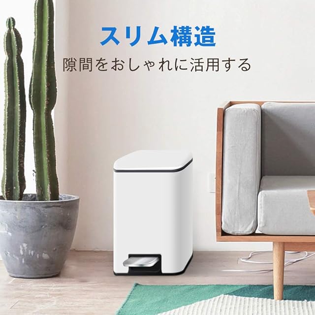 商品名:Grideto ゴミ箱 ペダルペール ふた付き ペダル式 コンパクト 音無し 防臭 場所とらない ステンレス 5L 四角 (白い)