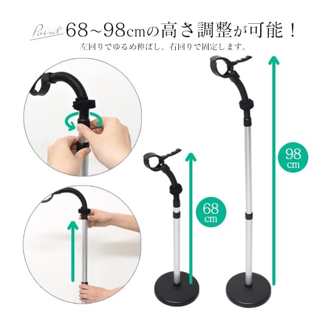 商品名:ドライヤースタンド ヘアドライヤーホルダー ハンズフリー 高さ調節可能 63~93cm 角度調節可能 便利グッズ