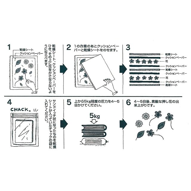 このセットと重しだけあれば、板やティッシュ等が不要で押し花ができます。