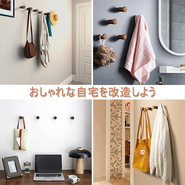 TANGJ 木製ウォールフック 6個入れ 和室向き木製フック 100 Percent高品質無垢板材ウォールナット 丈夫で長持ち 取り付け簡単 ネジ、アンカー、説明書インストール道具一式 耐荷重10kg 30年間長持ちの品質 壁掛けフックの仕様: 材質:100 Percent天然木(ウォールナット材) カラー:胡桃色 サイズ:長さ約5.0cm×直径約3.5cm 包装と封入: 6×木製壁掛けフック 6×ネジ 6×プラスチックアンカーボルト 1×説明書 取り付けやすい: ドリルで直径約8mm、深さ約40mmの穴を開ける 空いた穴にアンカーを打ち込める ネジをフックに、次に壁にネジを込める 注意:フックが完全に壁に垂直になるように、ゆっくり締め付けてください 品質: 弊社は30年間の品質を提供します。ちゃんと製品の質をきびしく取り締まるので、ご安心にお求めください。何かご不明な点がございましたら、いつでもお問い合わせ下さい。万が一問題がある場合、是非お気になくてメールでお教えください。ご返金・返品とか無償交換とか対応できます。