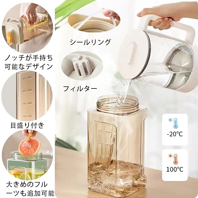 【フィルタリング・漏れ防止設計】麦茶ポット 蓋の内側にシールリングの設計があり、360°密閉を実現でき、漏れることなく屋外でも使用できます。 バッグやポーチに入れても安心です。