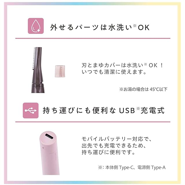 まゆカバーと刃は水洗いOK!いつでも清潔に使えます。※電源側:Type-A
