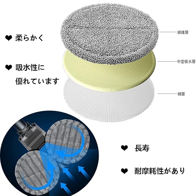 汎用 回転モップ 替えパッド 電動モップ替えパッド 回転モップクリーナー パッド 電動回転モップ モップ 拭き掃除水拭き 強吸水率 窓拭き 4枚入