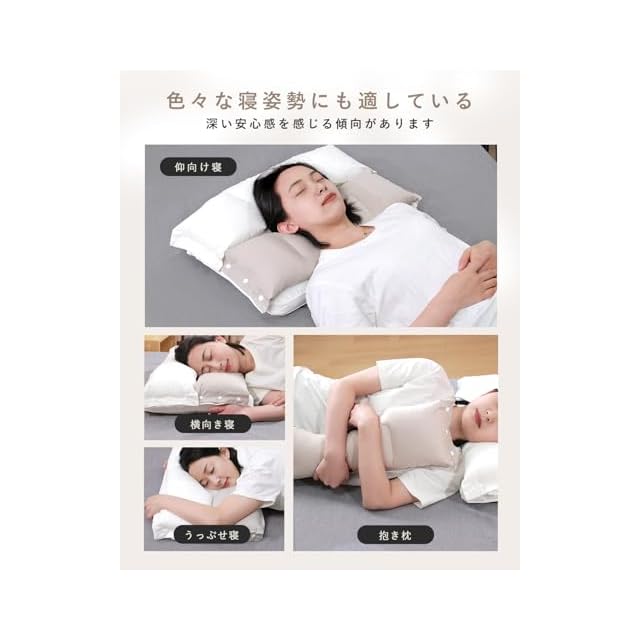 【複数の睡眠エリア、良質な睡眠を得る】枕の生地は綿100%素材を使用しており、優れた保温性能を持つ、ぐっすり快眠のために、冬には寝床内の温度を適正に保つことができます。思わず頬擦りしたくなるほどの柔らかさ、弹力性が強いので、柔らかいながらも沈み込み過走ず首が安定、落ち着いた雰囲気とリラックス効果で睡眠をサポートします。まくらの複数の睡眠エリアで、首元のゆるやかなカーブは、仰向け寝も横向き寝も首・肩がおさまりやすいまくらです。