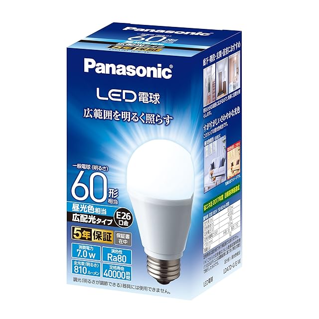 商品名:パナソニック LED電球 口金直径26mm 電球60W形相当 昼光色相当(7.0W) 一般電球・広配光タイプ 1個入り 密閉形器具対応 LDA7DGEW