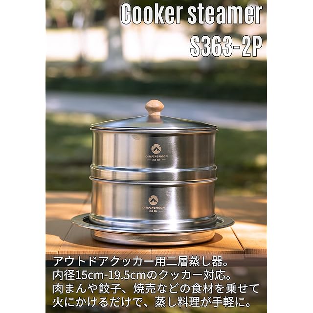 キャンピングムーン(CAMPING MOON) キャンプ せいろ 蒸し器 クッカー 2段 ステンレス304 内径φ15〜19.5cm用 S-363-2P