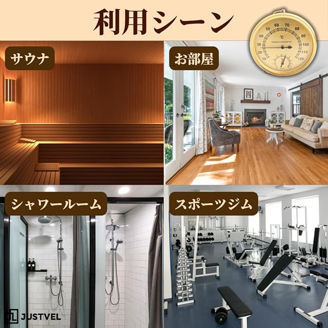 商品名:JUSTVEL 温度計 サウナ 温湿度計 湿度計 室内 室外 湿度 壁掛け式 防水 アナログ 吊り下げ お風呂