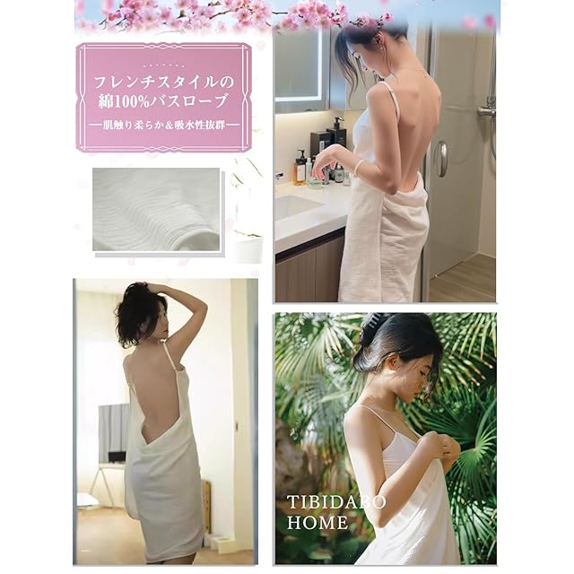 厳選された綿ガーゼ素材で仕立てたフレンチテイストの着るタオルは、肌に寄り添うような柔らかな風合いと優れた吸水性を兼ね備えています。繊細なVネックと背中を大胆に開放するデザインが、上品なセクシーさを演出し、浴後のくつろぎタイムを特別な瞬間に変えます。ストラップ部分には調節可能なベルトを採用、お好みのシルエットに調整できるため、タオルでありながらドレスライクな着こなしが可能です。200gの軽量性とコンパクトな折りたたみサイズは、旅行の持ち運びにも最適。洗濯機で手軽にお手入れできる耐久性に加え、清潔感を長期間キープします。真っ白なカラーリングが醸し出す清純美は、温泉旅館での滞在はもちろん、自宅のバスルームや夏のプールサイドまで、あらゆるシーンで違和なく溶け込む存在感を発揮。季節を問わず愛用できる機能性と、思わず触れたくなるような肌触りの良さが、日常に小さな贅沢をもたらします。