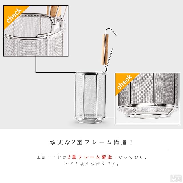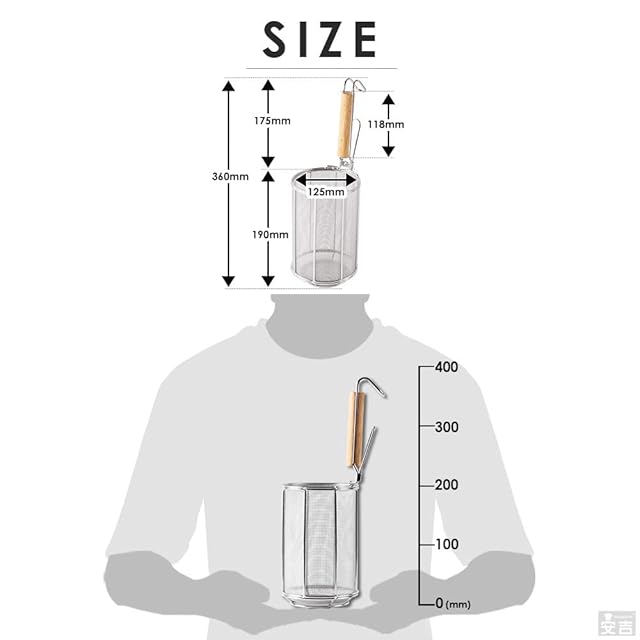 20メッシュの極細目で細い麺にも対応しております。 スパゲッティやフィットチーネに代表されるロングパスタの他、マカロニやペンネ、シェルといったショートパスタにも最適です。 テボのザル部は2サイズのご用意がございます。麺の長さによりお選びください。 SUS304ステンレスを採用しているので腐食にも強く衛生的です。 パスタ以外のおそばやラーメン、うどんといった麺類の揚げざるとしてもご使用が可能です。