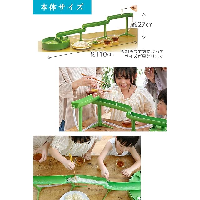 元祖流しそうめんのように上から流れるタイプの卓上流しそうめん。 全長約1m。インパクトのある超ビッグサイズ。 いつものそうめんを楽しく食べられます。大人から子供まで楽しめるので、家族や友達とのパーティーにもピッタリです。