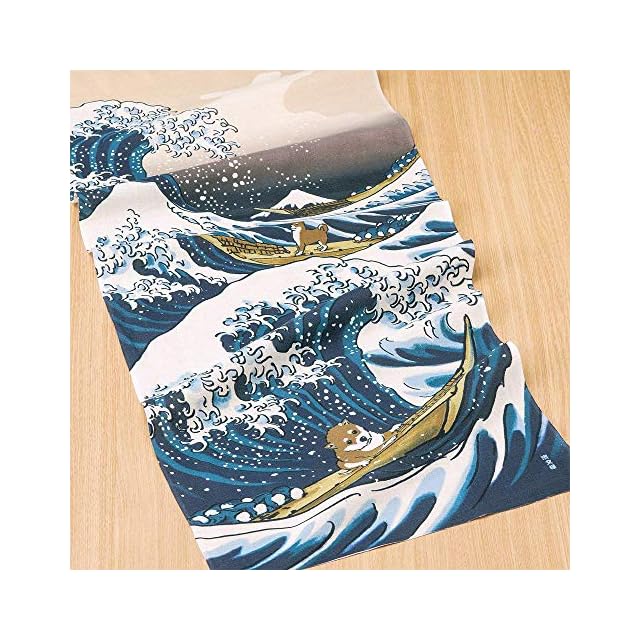 商品名:濱文様 絵てぬぐい 北斎 豆柴と大波