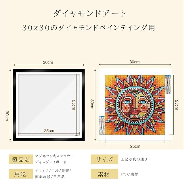 商品のサイズ:ダイヤモンドアートフレームサイズ:約 30x 30cm、内枠サイズ: 約25 x 25cm。約30 x 30cmのダイヤモンド絵画のディスプレイに適しています。 ご購入前にサイズ情報をよくご確認ください。