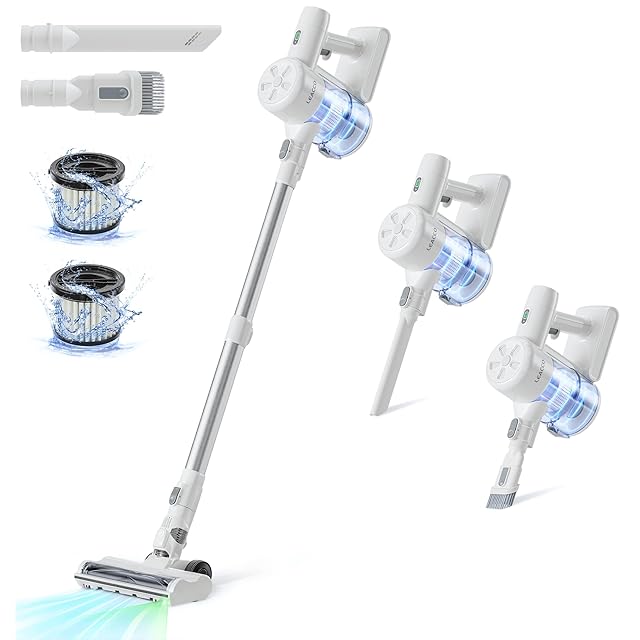 商品名:掃除機 コードレス 42000pa LEACCO コードレス掃除機 自立式 軽量 そうじき サイクロン 3段吸引力 45分間稼働 グリーンLEDライト 伸縮型パイプ スティッククリーナー vacuum cleaner フローリング/カーペット/カーテン/ソファ/車に適用 日本語説明書 PSE認証済 最長18ヶ月