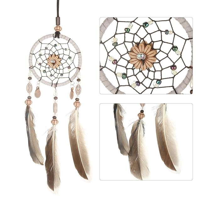 商品名:ネイティブアメリカンインディアンドリームキャッチャー サーキュラーネットドリームキャッチャー付きフェザーシェル車の子供用寝室の壁掛け装飾飾り