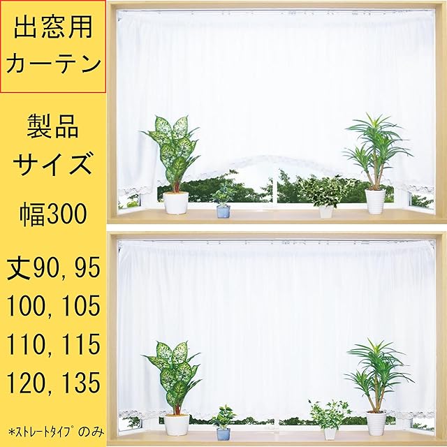 出窓用UVカットレースカーテン ◆製品サイズ:幅300x丈105cm(ストレートタイプ)適応窓サイズ:幅150〜200cm。 上部の芯地部分をお客様ご自身での調整が必要です。