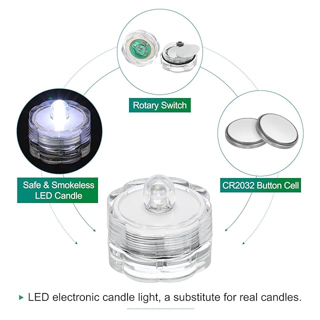 防水素材は水槽やお風呂などに適しています。十分な明るさで、伝統的なキャンドルの代わりに使用でき、炎や熱がなく、高い安全性を備えています。電池は70時間持続し、切れた場合には交換できます。