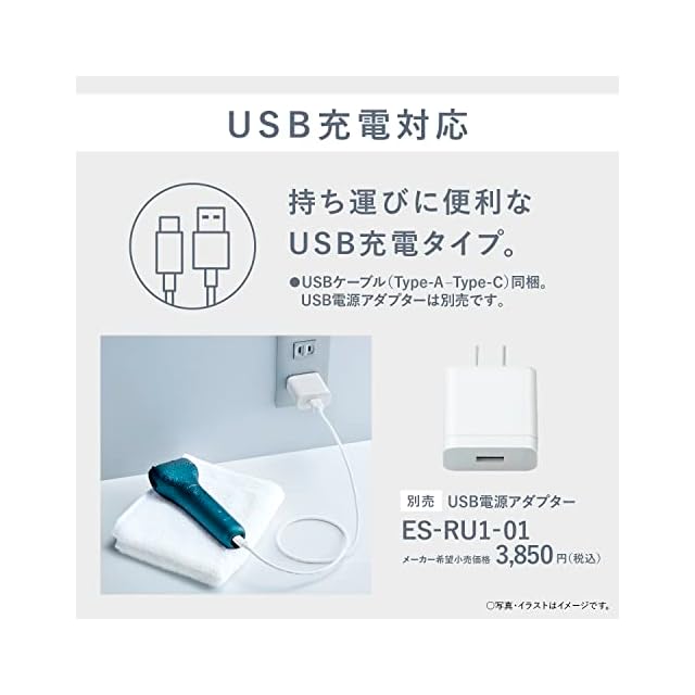 商品名:パナソニック メンズシェーバー 3枚刃 トリマー付 USB充電モデル 急速充電 青 ES-RT4AU-A