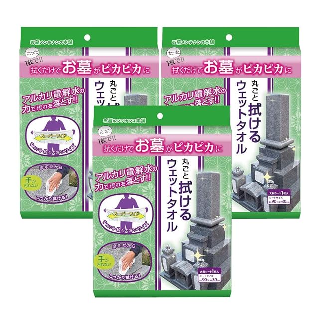商品名:お墓丸ごとウエットタオル 3枚セット 品番:ZWC-90〈90cm×30cm〉