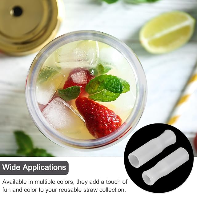 uxcell シリコンストローチップ 金属ストローカバー 柔らかい 再利用可能 ストローチップ 8 mm外径用 ステンレスストロー 12個 ホワイト