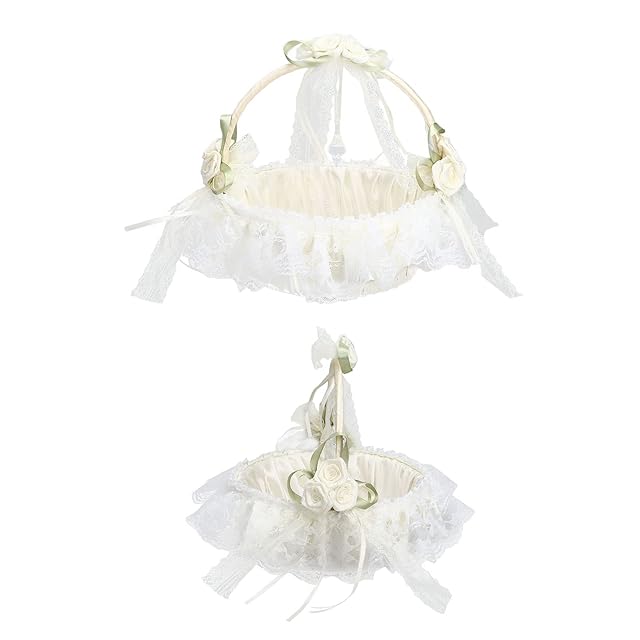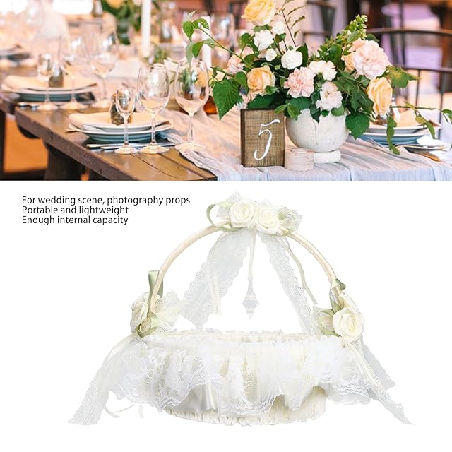 Fokavic ウェディングフラワーバスケット、結婚式の白いフラワーバスケット、大容量のレースエッジロマンチックなフラワーバスケット レース ブライダル装飾 結婚式のフラワーガールのバスケット 結婚式の写真の小道具 ウェディング用品 サテンフラワーバスケット ホワイト